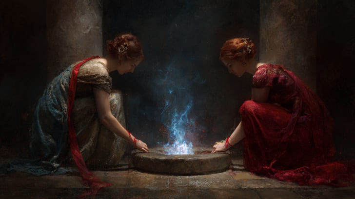 Vesta brings the instinct to dedicate, to guard a flame; Eros brings the ache to merge, to move toward what enlivens. Together, they form a private altar to longing. You may feel most alive when your desire has context and meaning—ritual, promise, craft, a room with a door you can close. Attraction becomes a practice, not just a feeling. This can be exquisitely grounding: the knowledge that what turns you on, creatively or romantically, is something you can tend with care and intention.